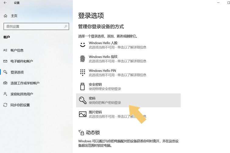 点击打开“登录选项”,在弹出的界面里找到“密码”选项。如下图: