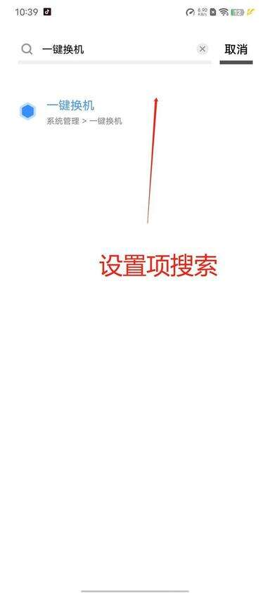 Origin系统的操作方式比较类似,在负一屏搜索“一键换机”,或者直接在设置项中搜索也可以。
