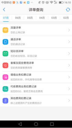 登录网上营业厅,点击“详单查询”,或是营业厅手机APP上的“详单查询”,如下图。通过网上营业厅或是营业厅手机APP可查询最近6个月的通话记录。