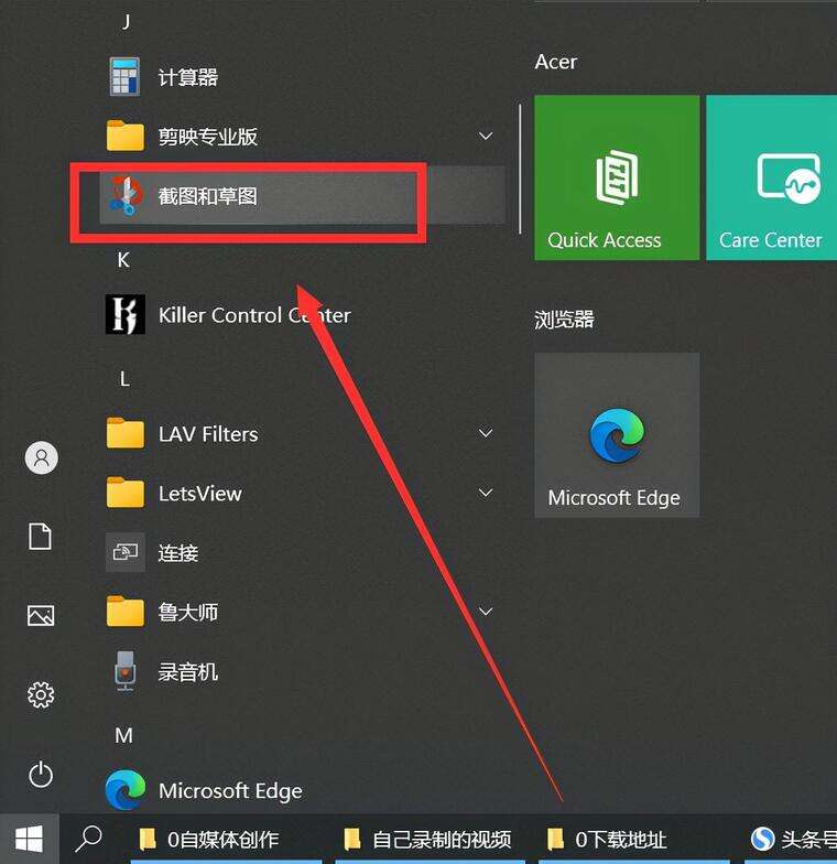 我们还可以通过windows开始菜单里的“截图和草图”功能来局部截屏。