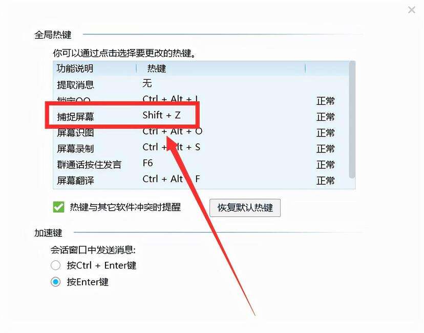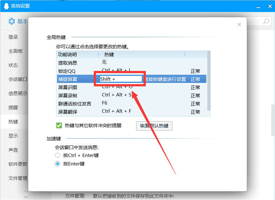 点击“捕捉屏幕”右侧的热键项,就可以修改热键了(如下图),你可以根据自己的习惯,改成自己喜欢的热键。