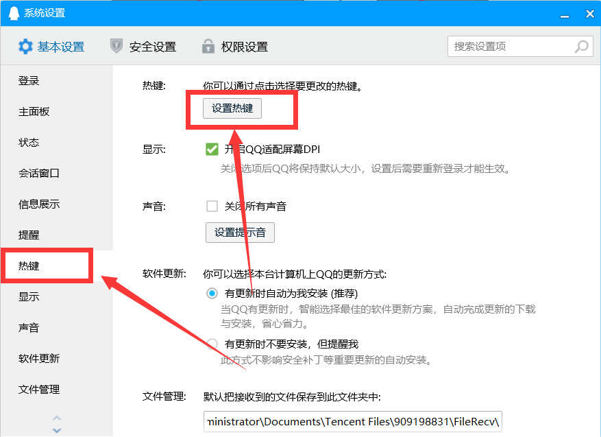 手机上离不开微信,电脑上肯定也离不开QQ了,QQ是我们电脑上使用最多的社交软件,几乎每个人的电脑上都有它的身影。QQ也带有截图功能,我的QQ截图快捷键是Shift+Z键,只要同时按下它们,就可以截取全屏或局部截屏。当然,这个快捷键我们可以自定义。打开QQ的设置,点击左侧导航的“热键”菜单(如下图)。