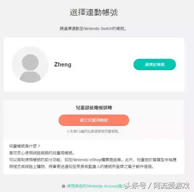 如果之前没有任天堂账号,请选择第二个新建账号"Create Account"
