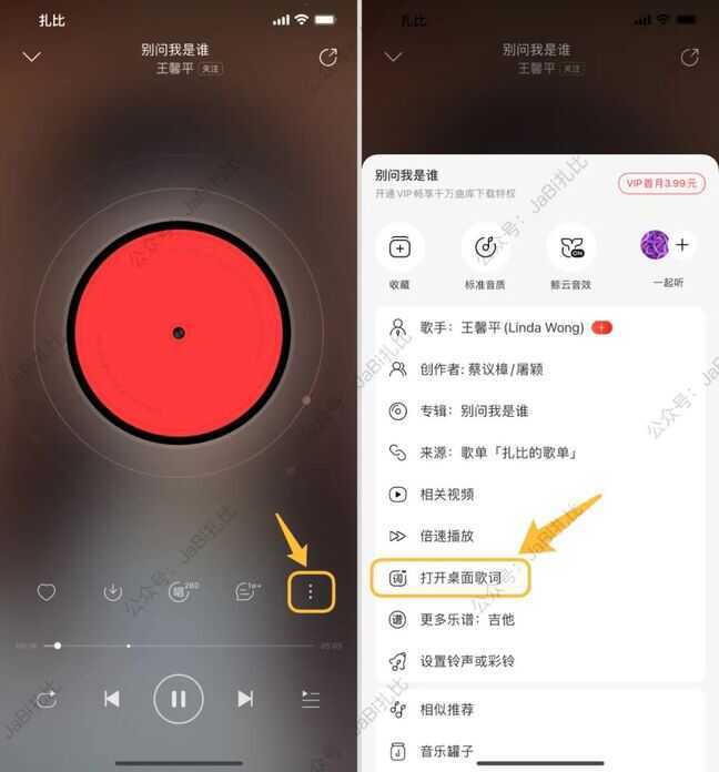 首先,需要把网易云音乐升级到 8.7.50 或后续版本。打开网易云音乐,在歌曲播放界面中点击「⋮」按钮,再点击「打开桌面歌词」即可。