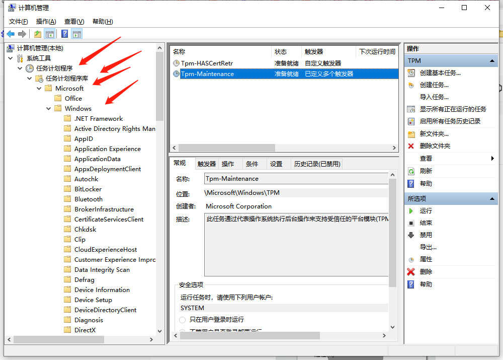 方案一:电脑右键 管理,依次点开 系统工具-任务计划程序-Microsoft-windows-TPM