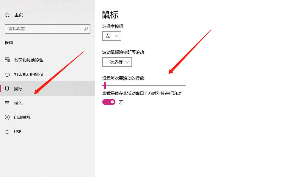 方案二:设置-设备-鼠标-设置每次要滚动的条数