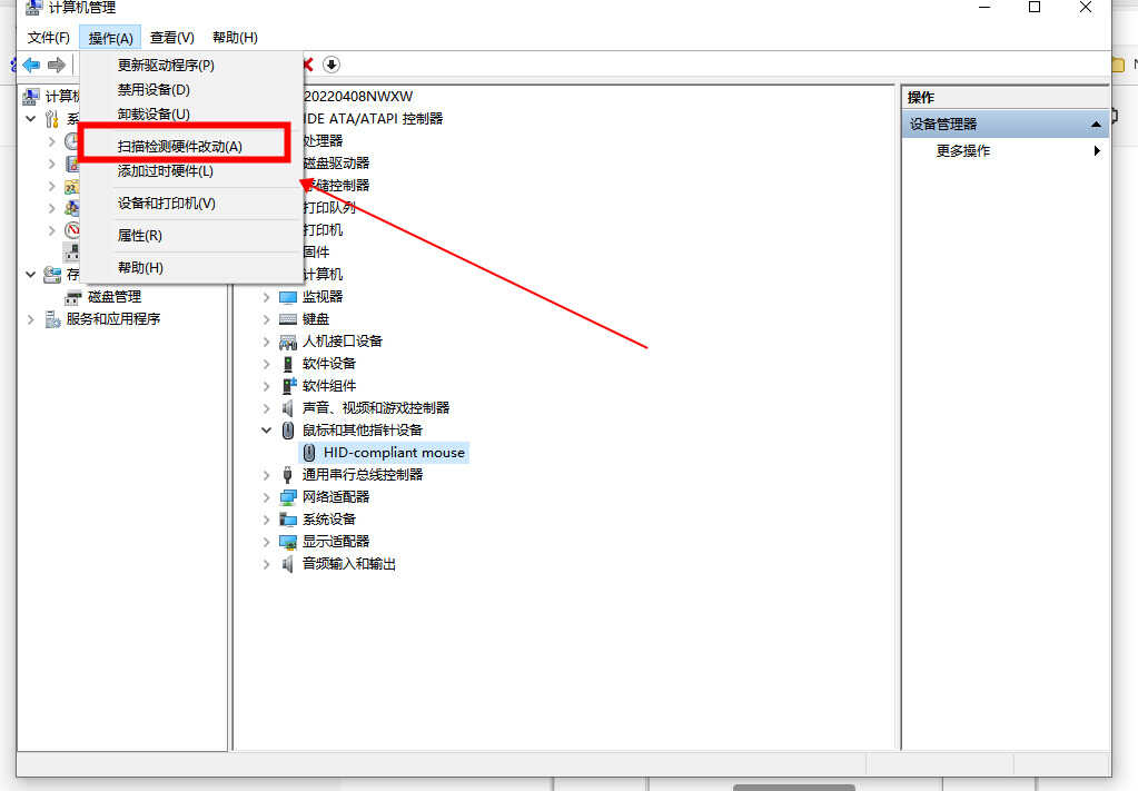 方案三:进入设备管理器-鼠标和其他指针设备-卸载-扫描硬件改动