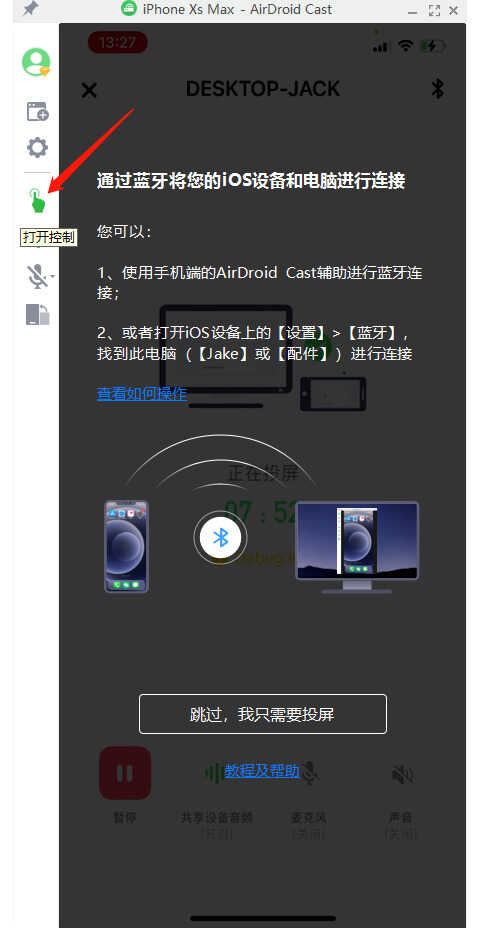 第二步,在电脑上控制苹果设备(通过蓝牙连接设备)