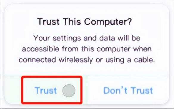 3:如果iOS设备上弹出“信任此电脑”的弹窗,请点击“信任”按钮(若没有出现该弹窗,可能是之前已经信任过,请忽略此步骤)