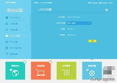 之后,点击左侧“LAN口设置”,一般会选择“自动”设置,让系统自动分配 IP地址。