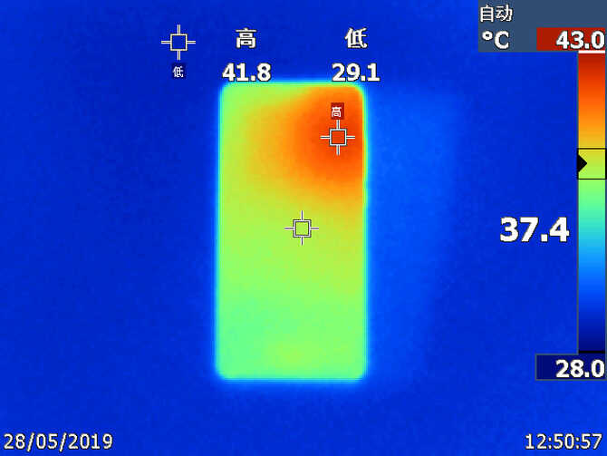 在连续15分钟左右的最高画质《和平精英》以及《王者荣耀》游戏中,Redmi K20 Pro的平均帧率都接近于满帧,机身的最高温度最高在41.8摄氏度,集中于右上角,对横屏游戏的影响有限,整体表现还是令人满意的。
