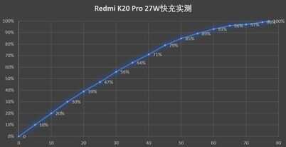Redmi K20 Pro在前半程的速度优势明显,半小时内可以完成56%的电量补充,充满需要77分钟左右,速度相当可观。考虑到其4000mAh的电池容量,如果用户可以利用零碎时间可以快速补充电量,续航基本不用担心。