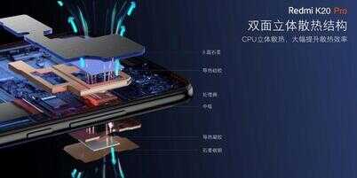 为了发挥这颗SoC的实力,Redmi K20 Pro也配套升级了为8层石墨立体散热系统。这是一套双面散热结构,一面通过定制的8层石墨均温体将热量传导至屏幕释放,另一面则是通过石墨碳钢将热量传导至后壳降温。