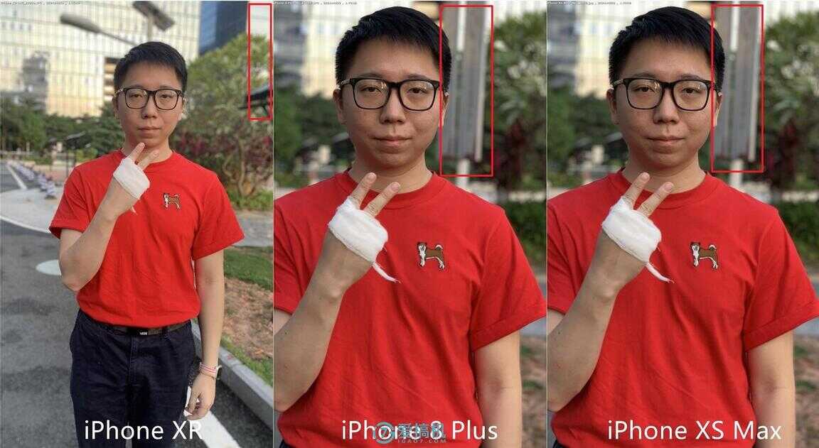 同位置拍摄,注意取景视野和后面的景深压缩效果(XR是广角摄像头做虚化)