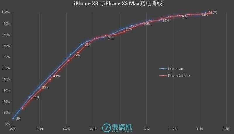 iPhone XR和前代同代一样,都支持PD快充(但得额外购买快充线和快充头)。最高功率18W,就算用Pixel的PD快充头也有17W。它也有7.5W无线快充,非常讽刺的是,无线充的功率都比官配5V/1A头要高。