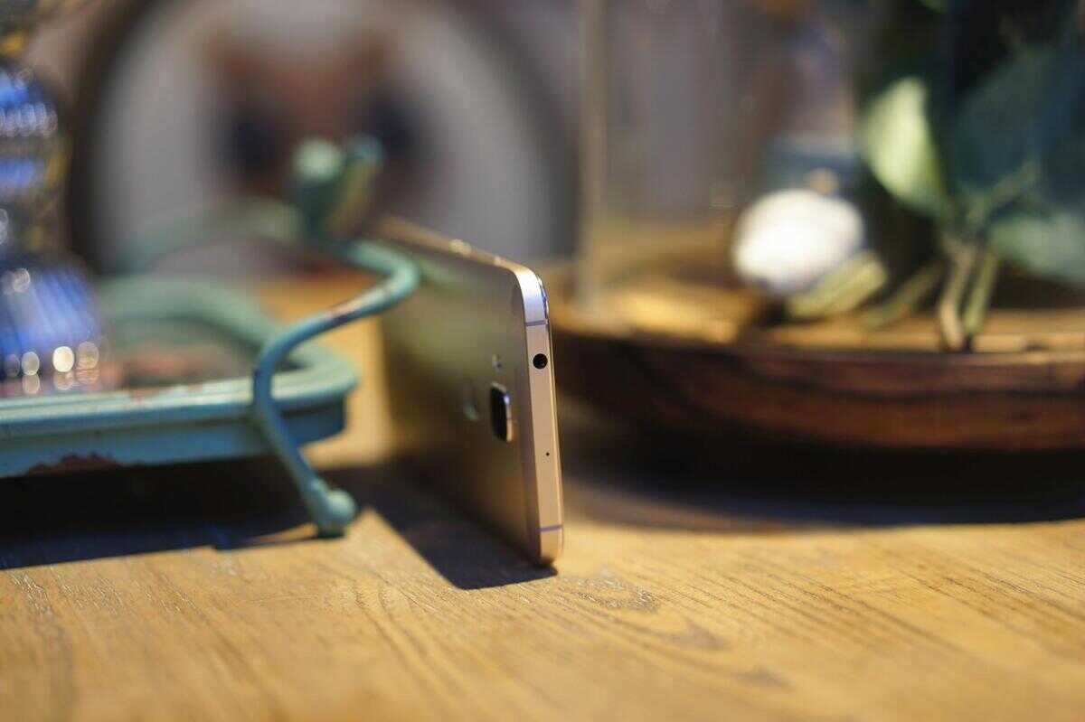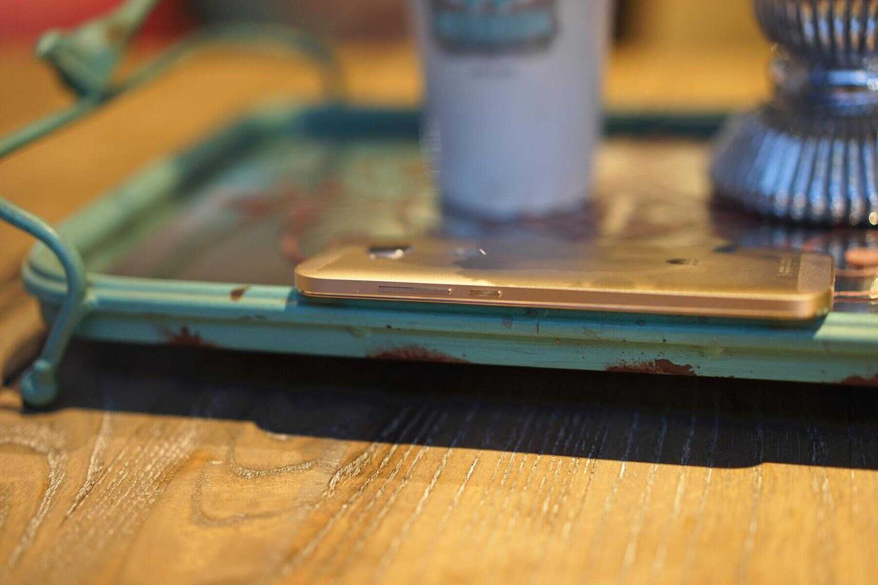 华为麦芒4 背面设计也很靓丽时尚,采用了全金属一体机身,金属比例竟然达到了高达90%,中框与背盖连为一体,再加上陶瓷喷砂工艺结合下,背部手感相当细腻,表面的颗粒感有效增强与手心的摩擦力,而且更温和,解决了金属材质容易滑落的诟病。这次繁繁评测的华为麦芒4 全网通版是最新的晨曦金色,这种金色要比苹果的淡金色要更为浓重,当然也不是LOW的“土豪金”,应该是中国人比较偏爱的的配色吧,奢华中不失内敛,在阳光下华为麦芒4还会会反射出闪耀的亮银色,金属感浓郁。