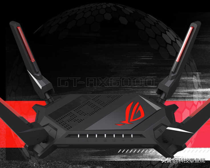 如果你预算比较充足,需要一台性能极为出色的高端电竞路由器来保障自己的游戏体验的话,全新推出的ROG GT-AX6000准没错。像素风ROG LOGO搭配神光同步“败家之眼”,信仰充值到位。棱角分明的造型,使用红色长条点缀的天线,仿佛一艘宇宙战舰。