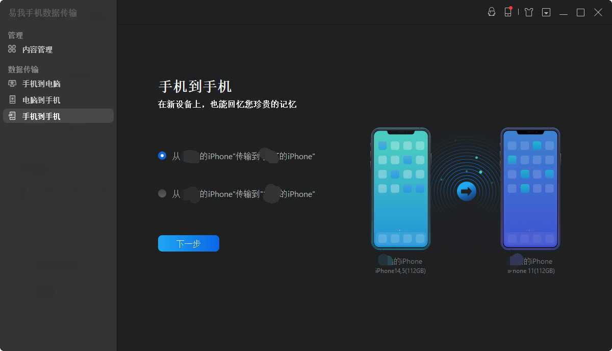 使用易我手机数据传输,将iphone数据迁移到新iphone上的操作步骤如下: