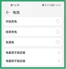 除了【开始充电】提示音外,华为手机还能支持【结束充电】、【充满足】、【电量低于指定值】或【电量高于指定值】语音提醒功能,可以帮助大家养成正确充电的好习惯,避免过充或过放。
