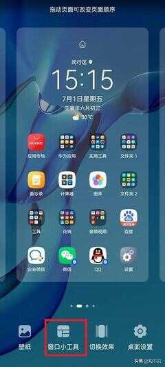 第一步:进入我们的手机,在手机界面中利用两根手指向屏幕中间捏合,就会出现【窗口小工具】;