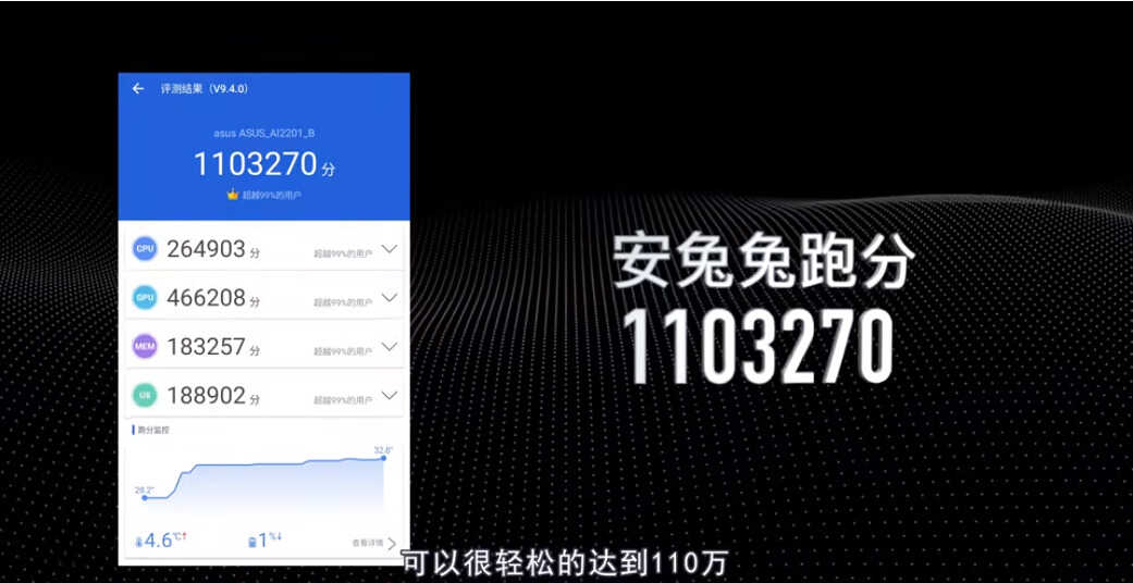 作为首批搭载骁龙8+Gen1处理器的游戏手机,ROG游戏手机6系列可以说是给玩家带来了一份满意答卷,将能堆上的硬件都配上了。处理器是最新的骁龙8+ Gen1芯片,相比骁龙8 Gen1,CPU主频提升至3.2GHz,CPU频率提升了10%,平均单核性能提升约8.36%。还配上了18GB LPDDR5和512GB UFS 3.1的超强配置,拥有X模式,在加装酷冷风扇6后还可以开启X+模式,进一步释放手机性能。从@科技美学 的实际跑分测试来看,安兔兔跑分达到了110W+,在当下旗舰中属于第一梯队。