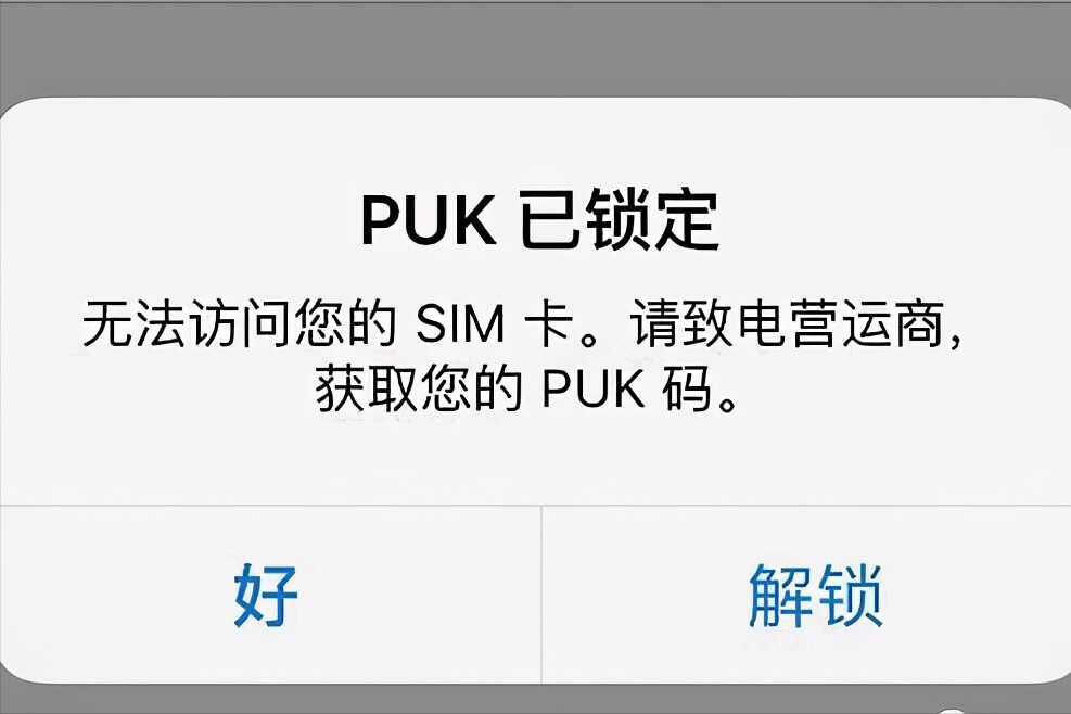 SIM卡自毁:当输入错误的PUK码超过10次时,那么SIM卡就会启动自毁程序,SIM失去所有功能。此时不要着急,自毁的只是这张SIM卡,用户的手机和手机号码还是存在的,直接本人持本人身份证,去当地通信运营商的营业大厅,重新办理一张SIM卡即可。