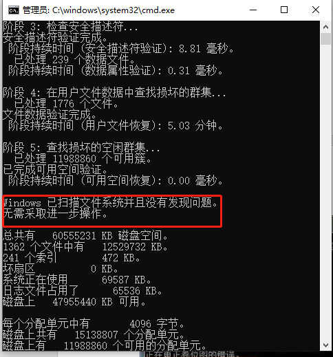 1.chkdsk中的/R:chkdsk中的/R是找到坏扇区并恢复可读取的信息,完成任务时会显示可读取的信息的报告,不会发送错误消息。