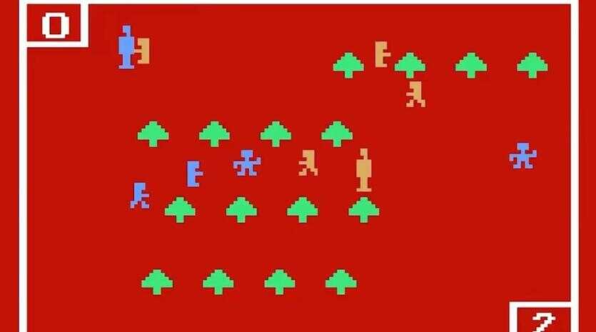 而RTS即时战略类游戏一定绕不开1979年发行的War of Nerves,这款游戏由两名玩家对战,分别控制着两位将军,而地图上的小兵则由电脑控制,这些小兵会互相攻击,如果将军触碰到了己方小兵,那么就会将其复活,如果己方小兵触碰到了敌方将军,那么游戏将获得胜利。当然,打倒敌方小兵会使己方小兵的移动速度变快。从这个玩法来看,是不是有魔兽争霸3、红警之类游戏的雏形呢?
