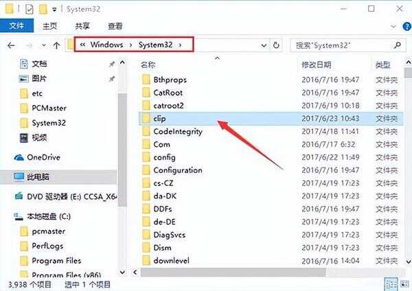 3、依次打开C:\Windows\System32 ,在该文件夹查找是否有“clip”文件夹,若没有则新建一个文件夹命名为:clip ,如图所示: