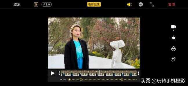 通过A15仿生芯片,iPhone 13的电影效果可以模拟出来景深效果,所以后期也可以二次对焦点以及调整背景的虚化程度。
