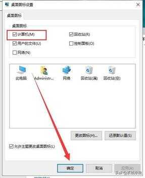 3、打开桌面图标设置,启用计算机勾选框,点击确定就可以了