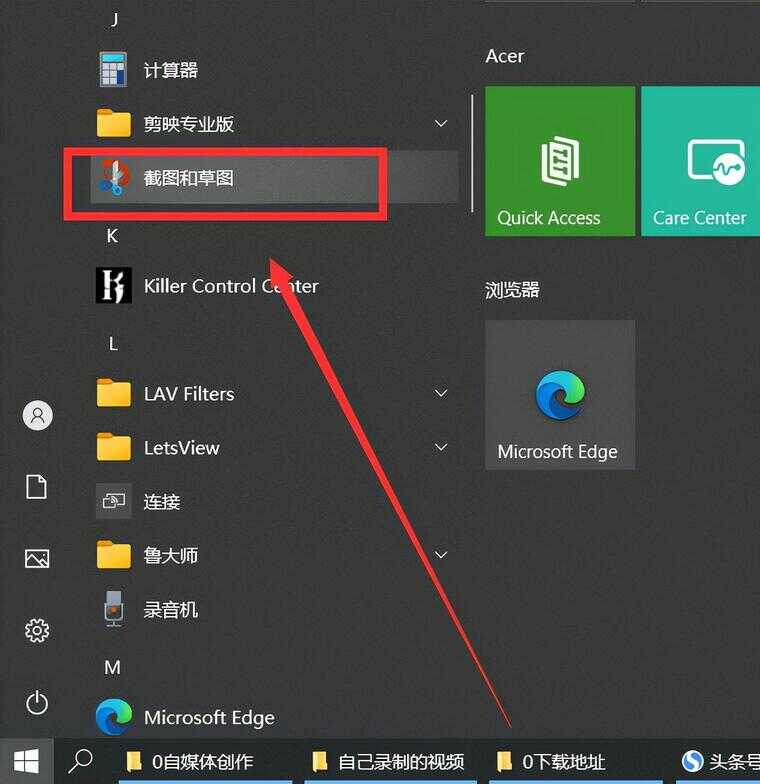 我们还可以通过windows开始菜单里的“截图和草图”功能来局部截屏。