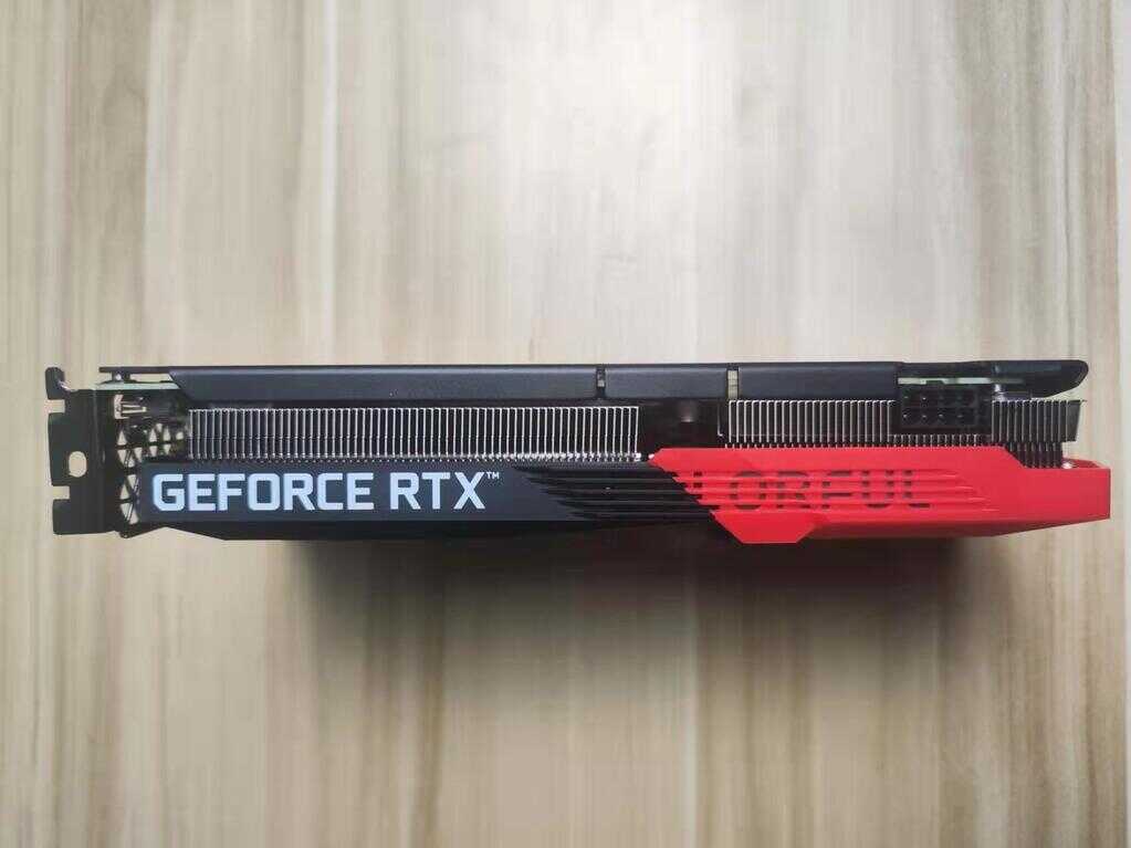 顶部视角图,这张显卡采用单8Pin供电接口,对于RTX 3050的供电需求来说可谓绰绰有余。