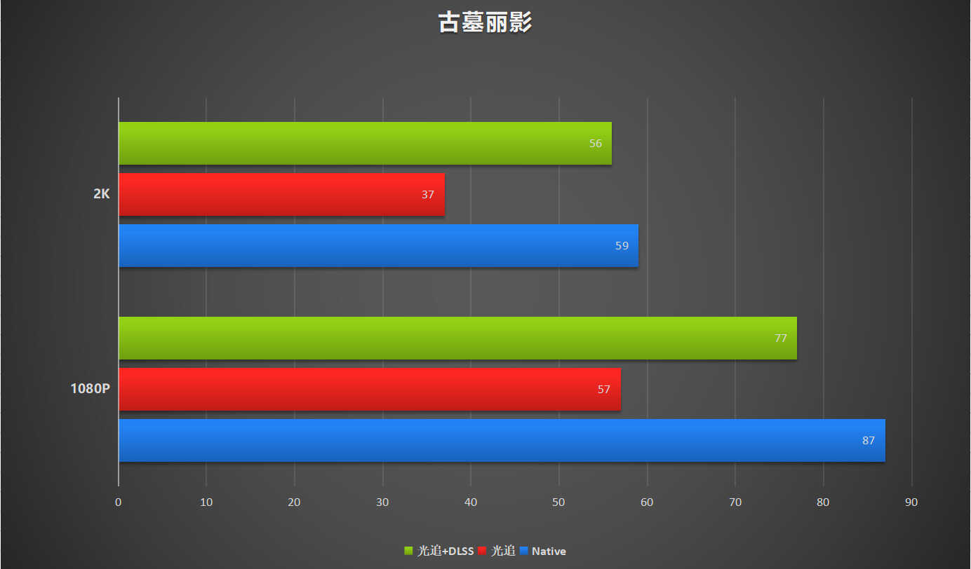 为了方便对比,我们决定测试了显卡在开启DLSS、光追以及两者同时开启下,运行《古墓丽影:暗影》的帧率表现。