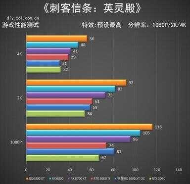 《刺客信条:英灵殿》是阿育推出的《刺客信条》系列的最新作品,在这款游戏中几款显卡的分数反馈与理论测试中有些许出入,可以看到RX 6600 XT在1080P分辨率下相比RTX 3060 Ti有明显优势,但分辨率越高甚至被RTX 3060 Ti反超,最终在4K分辨率下被RTX 3060超过。