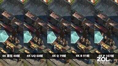 可以看到,在《银河破裂者》和《纪元1800》这种2.5D游戏中,即使在P模式下,几乎都不会有画质损失。主角所穿的机甲反正笔者是没看出区别,但细看植被的话,原生画质的草地更为细腻,而P模式则较糊。整体的帧数提升,最大为148%左右,而画质最精细的UQ模式,帧数提升也达到了45%左右。
