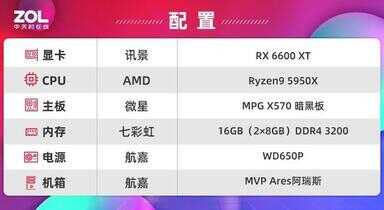 本次的测试平台我们选择了Ryzen9 5950X的CPU,主板为微星MPG X570暗黑版,以及RX 6600 XT。