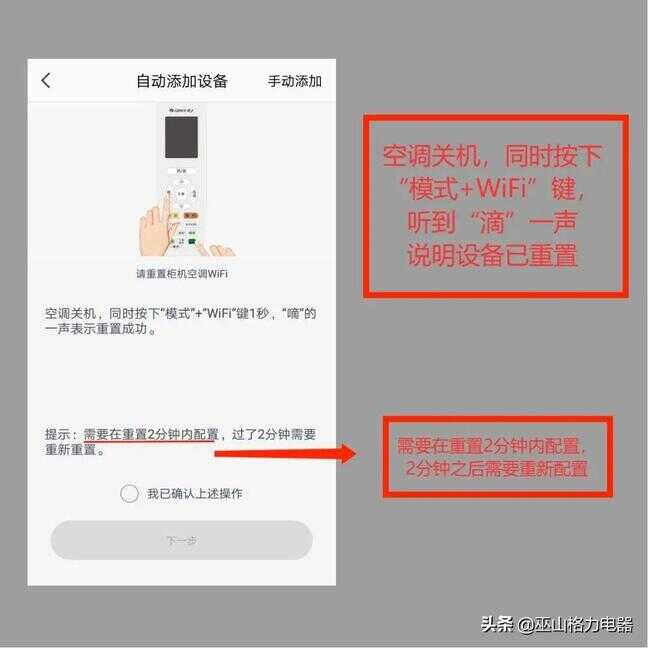 重置方法:设备关机状态下,遥控器同时按“模式+WiFi”键,听到“滴”一声即表明已处于重置状态