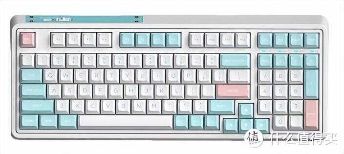 键盘采用98键配列,轴体有线性的风轴、段落的山轴可选择,键盘采用双色注塑的PBT球帽,具有较好的耐久度。键盘提供了三模连接并具有热插拔功能,连接适配以及后续的DIY空间都非常大。键盘右侧还有一个小旋钮可以调节音乐以及灯效,499元的价格,还算不错。