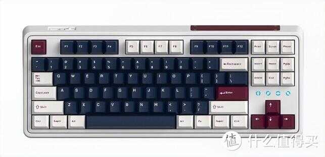 上面提到的腹灵CMK98带有数字区,对于喜欢小配列的玩家来说,占地方又没啥用。(我现在都用主键区上方的1234,基本上手不用不动,比之前体验还好……)这里推荐87配列的腹灵CMK97,依旧是极具质感的机壳与配色,再加上多样化的轴体和高品质的键帽,还有丰富的连接模式与热插拔功能。