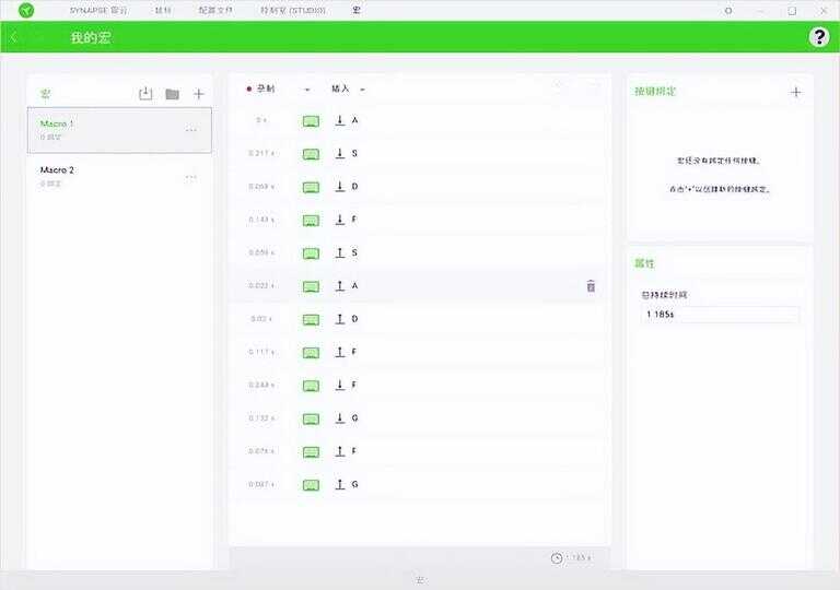 宏录制的过程与其他产品并无差异,仅需新建、点击录制按钮后并录制按键点击过程即可。另外,它也支持RAZERHYPERSHIFT,可通过组合键获得更多的按键操作逻辑。