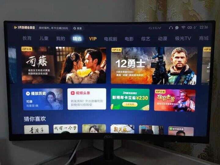 内置腾讯极光 OS,UI界面为主流的瀑布流模式,支持CEC、云游戏等功能,影视资源以自家的腾讯视频为主,支持手动下载其它应用软件,开机无广告。