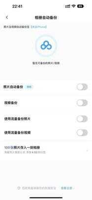 对于大多数人来说,照片和备份应该就是空间告急的罪魁祸首了。接下来我们就分别处理一下这两个庞然大物。对于照片来说,替代iCloud的可选项并不少,目前国内主流网盘基本都提供了照片备份功能,如果你并不需要iCloud所提供的多设备快速同步等功能,网盘的照片备份就足够使用了。值得注意的是,如果你此前选择了“优化iPhone存储空间”,那么在关闭iCloud照片前需要提前将图片从iCloud中下载下来,避免照片丢失。