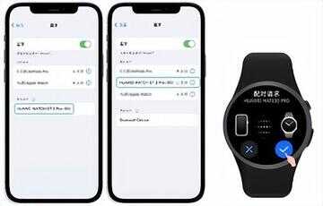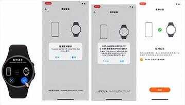 b.当穿戴设备屏幕出现配对请求时,点击√。手机上华为运动健康应用界面出现蓝牙配对请求提示框,点击配对。手机出现是否允许设备显示手机通知的提示框,请点击允许。
