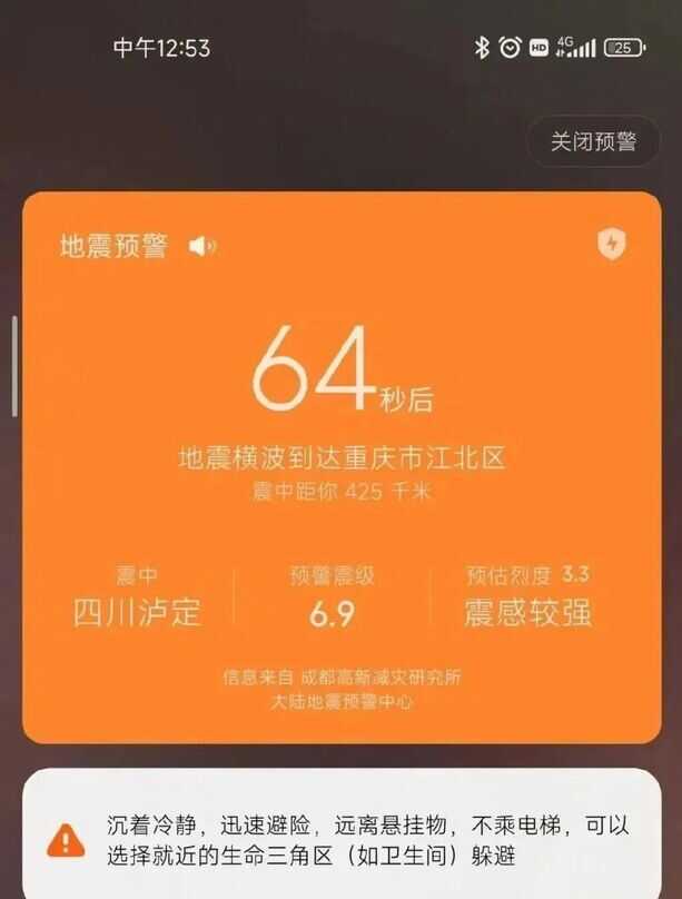 (注:如果手机显示“该地区暂不支持预警”,请下载“地震预警”App。)