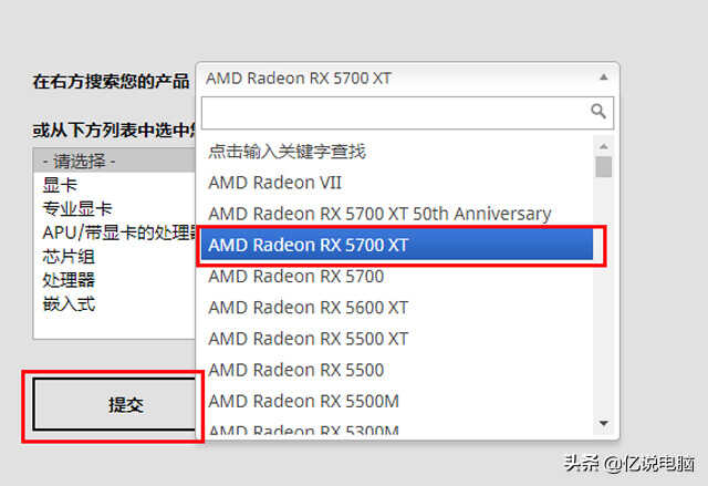 2.AMD显卡,百度AMD官网,或输入网址,进入到AMD的官网,点击网页上方的驱动与支持,进入驱动下载页面,我们可以直接在下拉框里选择显卡的型号点提交,也可以像英伟达一样利用筛选功能筛选出我们的显卡再提交。然后再选择系统版本,再选择不同日期的驱动程序,选好之后点击下载,待下载完成后同样得到一个.exe的应该程序,双击打开,下一步下一步安装就可以了。