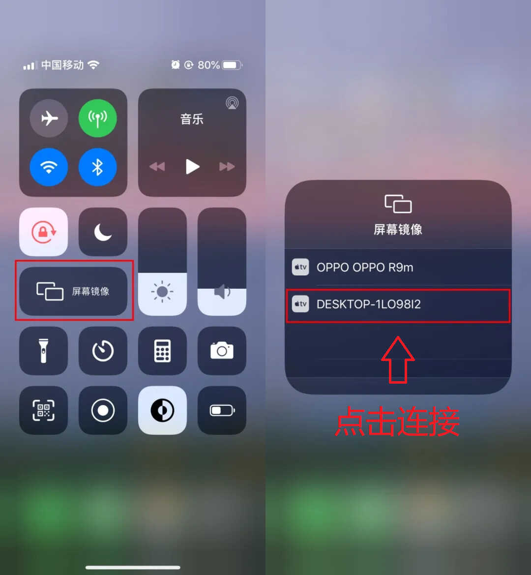 使用方法:打开苹果手机控制中心,点击【镜像投屏】,搜索可连接的电脑设备名称,然后在手机上点击连接,并在电脑端确认连接即可。