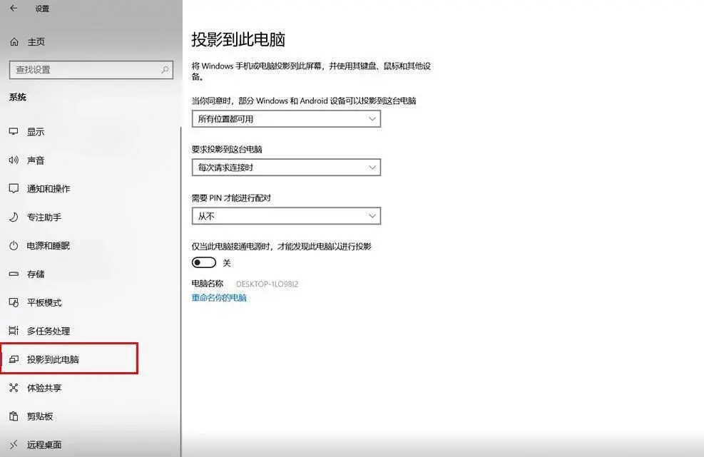 - 只有Win10以上系统才有投屏功能,仅支持安卓投屏。