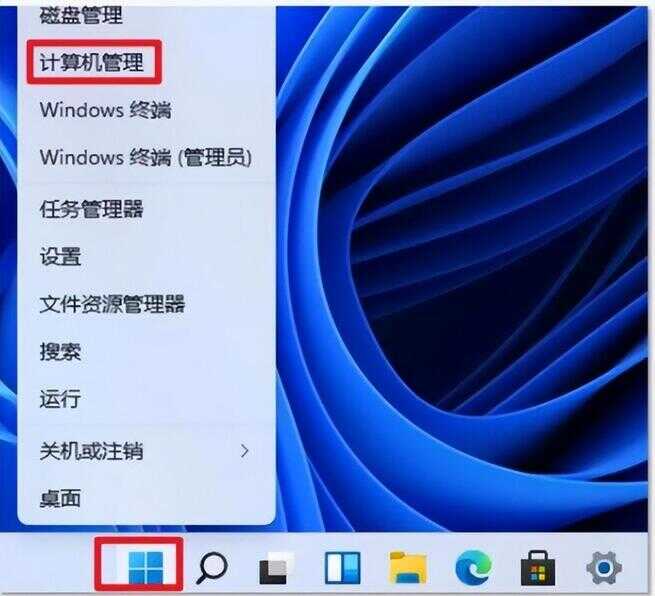 1、右键点击 开始菜单 ,选择 计算机管理 。