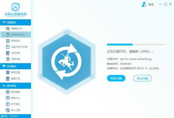 下载云骑士数据恢复软件(注意:不要将软件安装在丢失盘中)